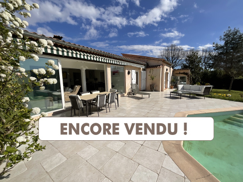 Villa individuelle 5/6 pièces parfait état cuisine équipée séjour cheminée 4 chambres 1 bureau ensoleillée terrasse piscine traditionnelle cuisine d'été calme parkings terrain 408 m²
